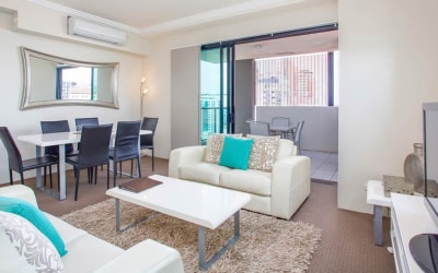 Our three bedroom apartments boast city views from level 20 and above. Perfect for extended family groups or if you need a little more space. The apartments include Foxtel and WIFI