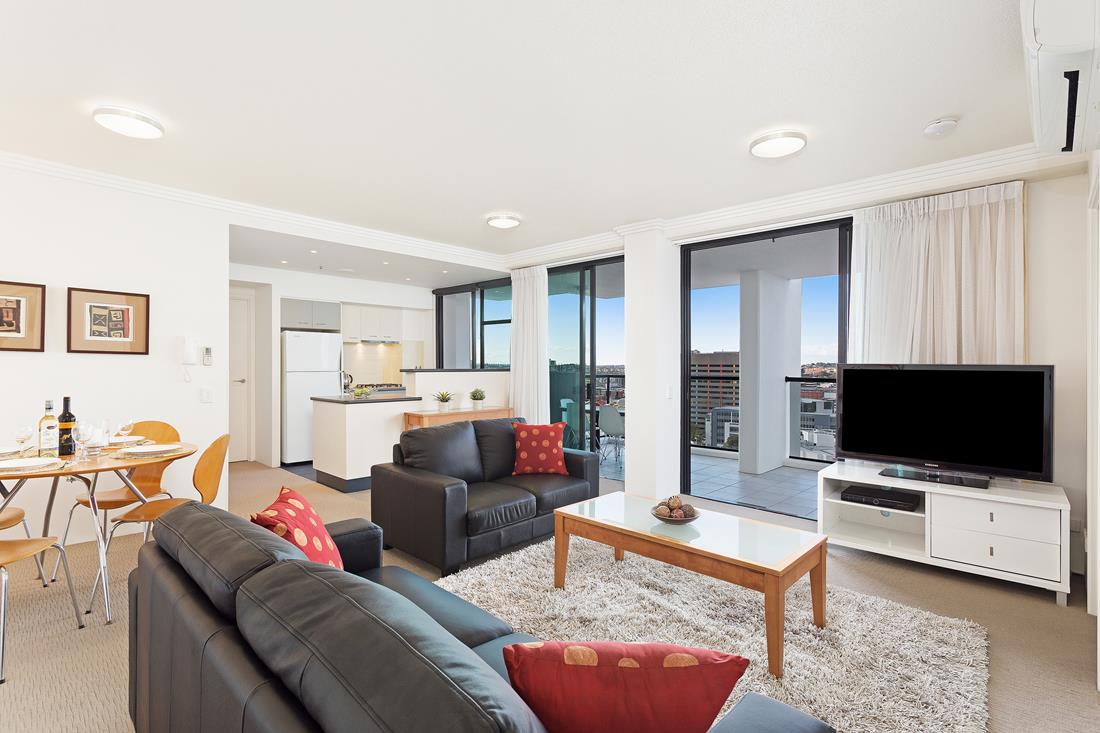 Kitchens feature a full sized fridge/freezer, microwave, all cooking utensils, gas cooktop & fan-forced oven, and crockery / cutlery for six. All apartments have a large balcony with outdoor furniture and views over the city.